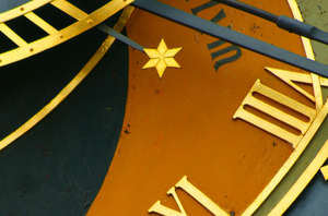 На синем фоне неподвижного циферблата еще можно увидеть 12 арабских цифр. Они находятся в верхней части циферблата, обозначают светлое время звездных суток и служат для измерения звездного времени.