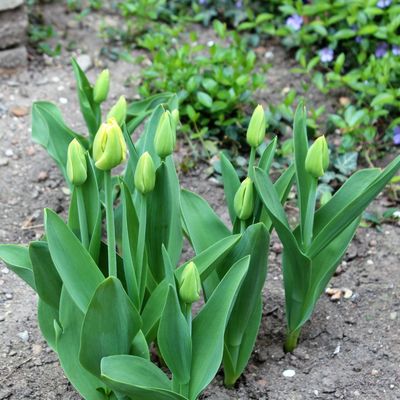 И только капризные тюльпаны пока не раскрылись, ждут солнышка.