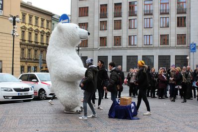 А вот дальше мы углядели березу, установленную напротив Палладиума и украшенную лентами и шарами. Как оказалось, она – главный символ весны.