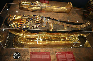 Однако Картер еще не знал о самой главной тайне древней гробницы. Внутри каменного саркофага лежали три гроба, которые были так плотно подогнаны один к другому, что их с большим трудом удалось отделить друг от друга.