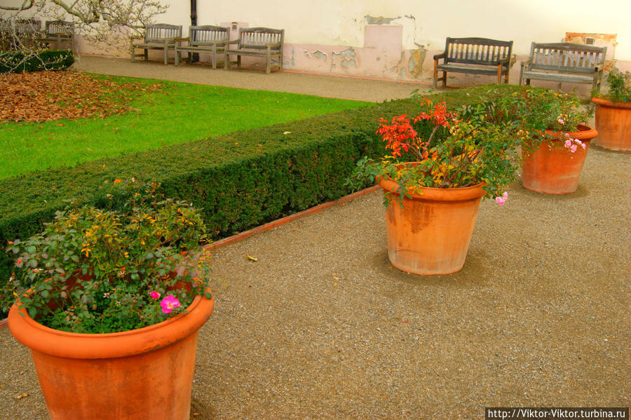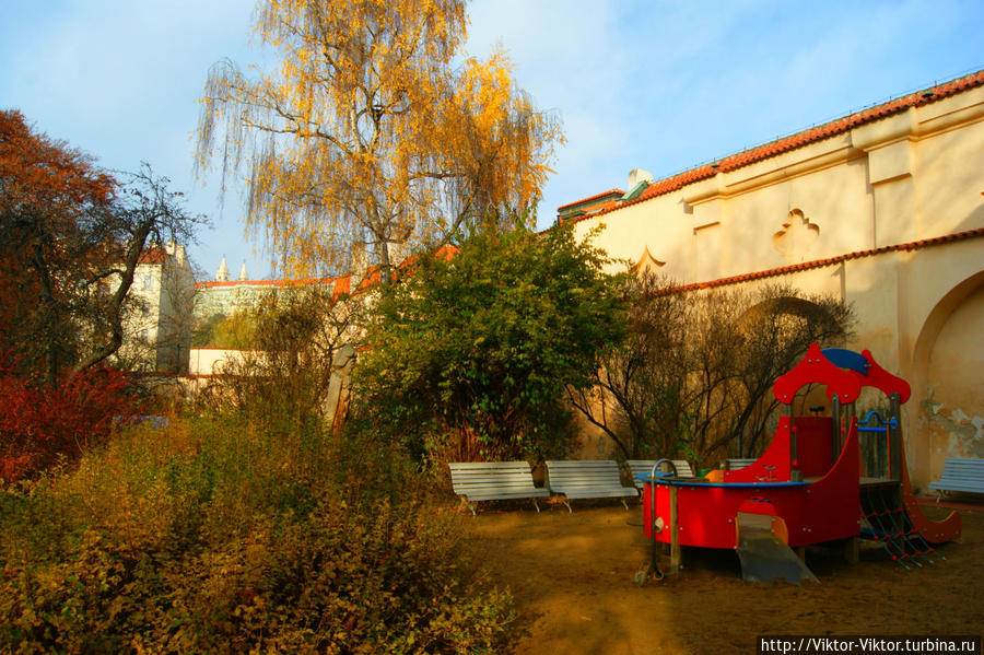 Так здесь появился дом графа Валленштейна. Когда в середине XVII века император Фердинанд III пригласил в Прагу женский монашеский орден босых кармелиток, он выкупил этот дом вместе с другими зданиями и участками для постройки монастырского комплекса. Кроме монастыря и храма Святого Иосифа, кармелитки разбили сад — очень женский, очень потаенный, укрытый от чужих глаз, с элементами сельской тишины, яблонями, грушами и простыми деревянными скамейками. Получилось место, где может успокоиться женское сердце.