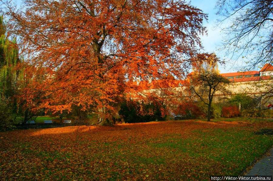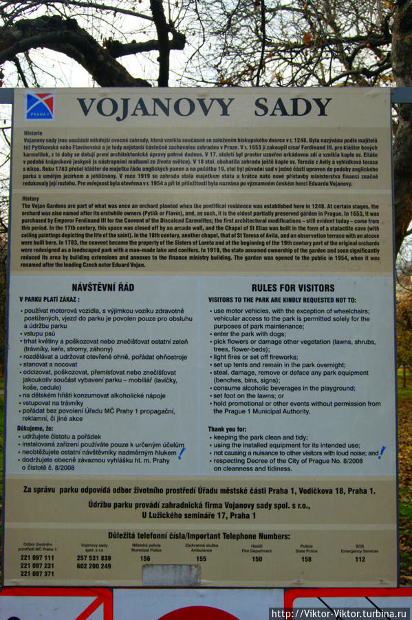 Вояновы сады спрятаны за стенами в самом центре Праги, как маленький, зеленый оазис, в котором можно посидеть на лужайках, понаблюдать за гуляющими павлинами и просто отдохнуть.