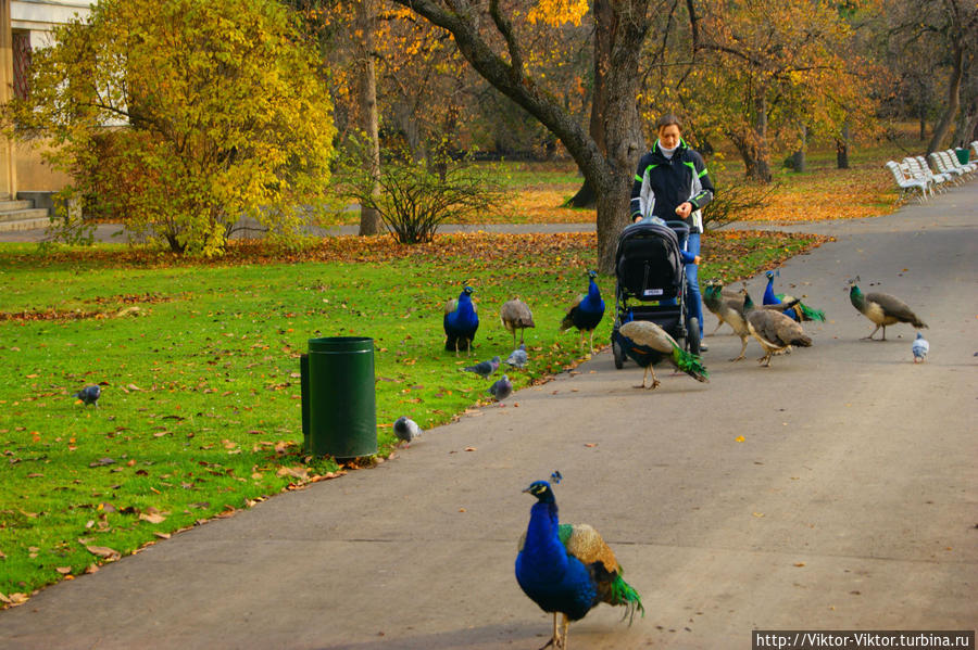 которые не прочь угоститься чем-то лакомым (не забывайте, что павлинов, уток и лебедей в Праге кормить можно, а вот за кормление голубей, особенно на центральных площадях, предусматривается большой штраф).