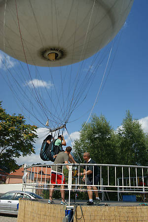 Это привязной воздушный шар системы AERO 2 на одного или двух пассажиров грузоподъемностью 280 кг. Диаметр шара 9 метров (250 квадратных метров поверхности) и он заполнен 380 кубометрами невзрывоопасного газа гелий.