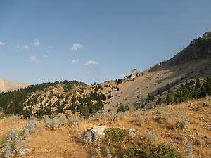 Он кажется достаточно крутым, но сзади есть вполне преодолимая козья тропа