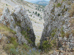 Я решила, что нужно как-то отсюда уйти, и спустилась по ущелью прямо на каменную осыпь. Ущелье было крутое, пришлось ползти на пятой точке. Фотографию драных штанов не покажу=)
