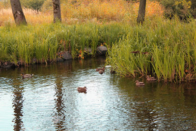 Крепостные пейзажи. Утки сначала устремляются к вам,а потом полощут крыльями по воде, вроде как и в испуге, но не взлетая, а как бы убегая, при резком неосторожном взмахе вашей руки.