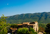 Забравшийся на гору он выглядит как неприступный форт, из которого когда-то велись наблюдения за всеми дорогами на подъезде к Апту, а его высокая и звонкая колокольня в случае чего била тревогу. Из-за этой важной роли когда-то Сэньон был привилегированным городком, а сейчас прекрасная деревня с зелеными площадями с фонтанами и грозным собором XII века