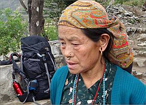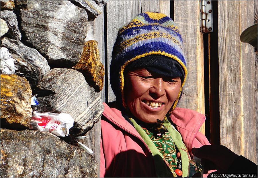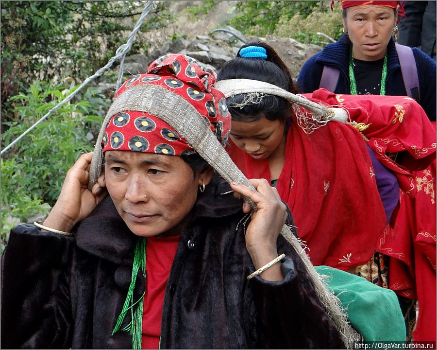 Но и в национальном парке Лангтанг тоже удалось их повстречать. Это была небольшая группа женщин, уже большей частью не молодых, возвращавшихся с террасных с полей с какой-то поклажей в небольшое горное селение, куда мы пришли с озера Госайкунда. Или просто казалось, что они немолоды. Тяжелый труд ведь не проходит даром. В пятьдесят женщина в Непале выглядит так, словно прожила не меньше 100 лет.