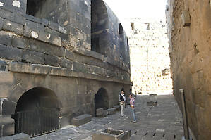 Босра — уникальный город. Здесь есть всего один единственный отель 5* на весь город. Стои проживание там от 100$. Но если вам очень повезет, то к вам пристанет хэлпер и предложит "комнату в центре". Эта комната действительно находится прямо у входа на древние руины из черного бызальта и амфитеатр, который с виду — настоящая крепость. Условия здесь ужасные — четыре стены и три матраса, да ворох одеял. Закрывается на проволоку. Удобства во дворе, горячей воды нет. Интернета естественно тоже.
