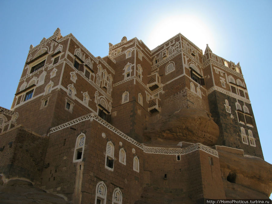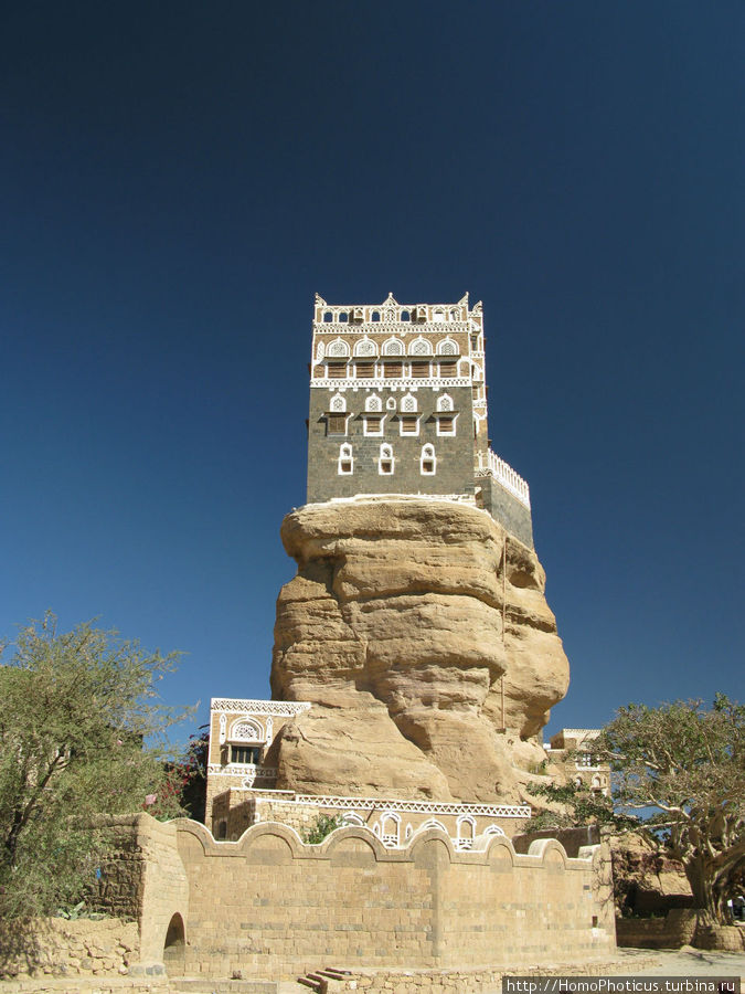Неподалеку от Саны находится одна из визитных карточек Йемена - расположенный в Вади Дар комплекс летней резиденции Имама Яхьи, доминантой которой - само жилое здание, находящееся на достаточно высокой скале и гармонично в эту скалу вписанное. Построен этот дворец в середине двадцатого века, но задумка не нова - фундамент на скале заложен в достаточно древние времена. Сама долина тоже очень красивая, но если приглядываться, в стратегических точках расположены будки дозорных, имевших право стрелять во всех, кто сунется в долину.Сейчас в здании находится музей.