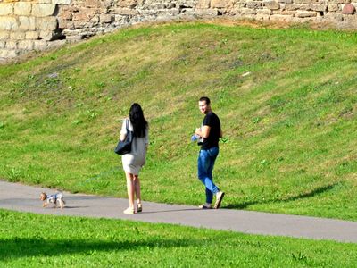 Потом мы гуляли в парке Псковского Кремля. Был прекрасный летний день, я поймала себя на мысли, что хочу фотографировать молодые пары — прекрасные и счастливые в любви.