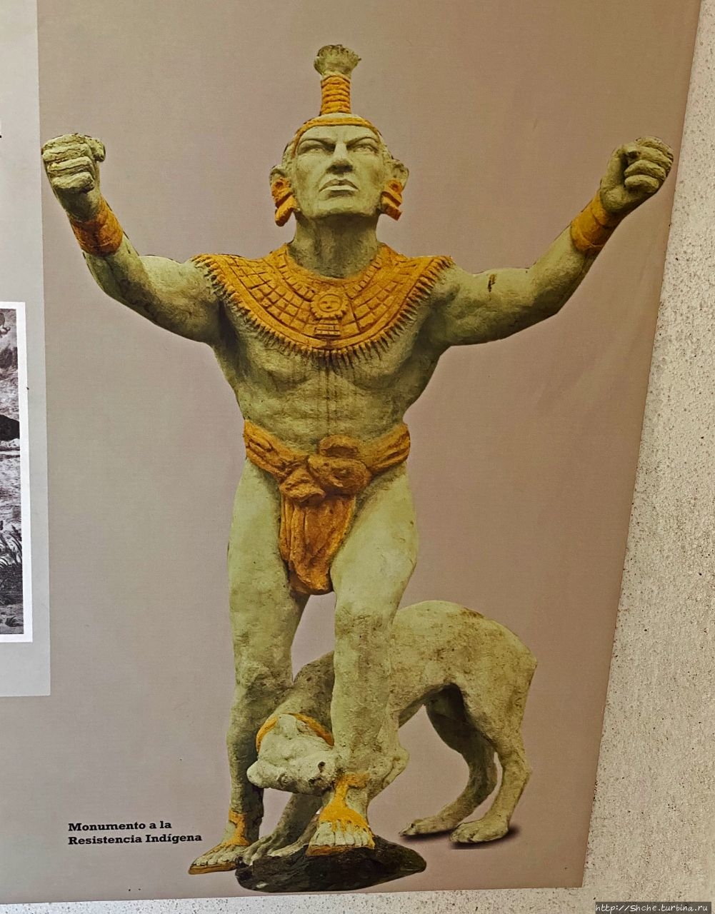 Кстати, напротив останков собора и находится тот самый памятник вождю чолутеков.