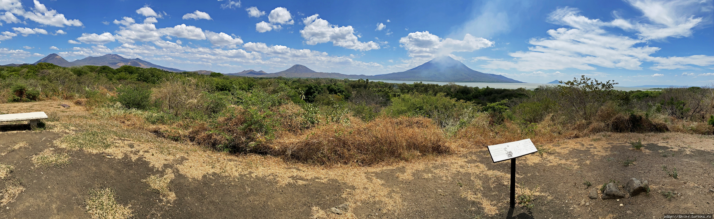 Но поднимались на холм мы не зря. отсюда открывается прекрасный вид на цепь местных вулканов, которыми так славится Никарагуа.