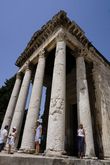 Сейчас в храме, построенном на стыке тысячелетий (2 год до н. э.- 14 год н.э.) в честь императора Августа и богини Ромы, музей, представляющий собой место хранения коллекции фрагментов, оставшихся от первоначального строения, которые можно увидеть за символическую плату в 5 кун. А частично уцелевший из строений в архитектурном ансамбле храм считают наиболее сохранившимся памятником за пределами Италии.