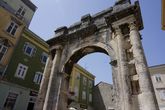 С нее, построенной представителями древнего патрицианского рода, выступавшими на стороне Октавиана Августа, еще в 20-х годах до нашей эры, начиналась улица, протянувшаяся через весь город. Хотя находилась она за городской стеной, да и размерами явно уступала аркам, возводившимся в честь императоров, тем не менее, арка появилась, даже была встроена в Золотые ворота города, представляя собой нечто вроде парадного входа в Пулу, и сохранилась до наших дней, несмотря на то, что ее неоднократно хотели снести.