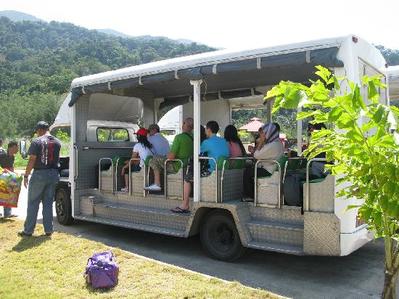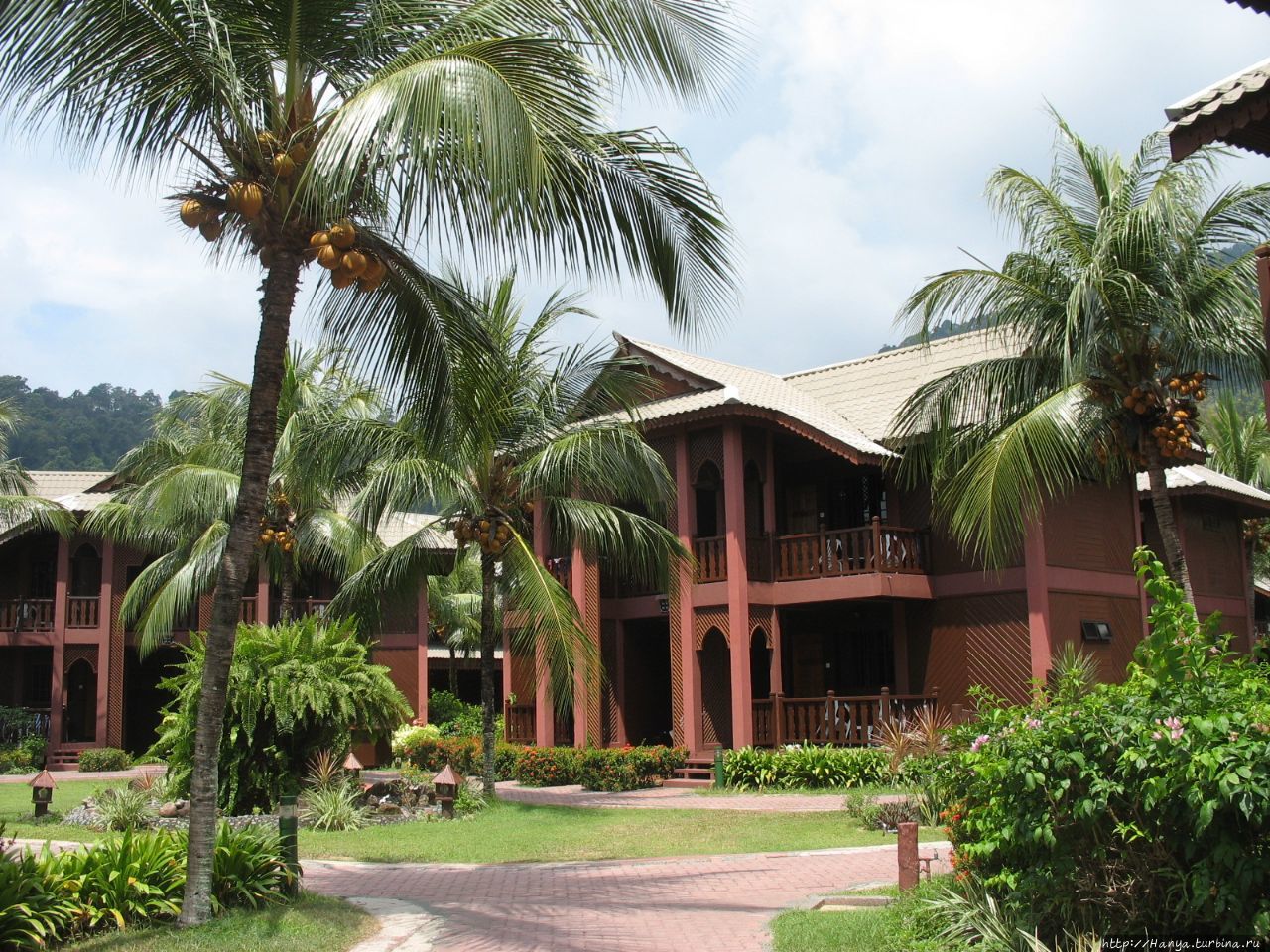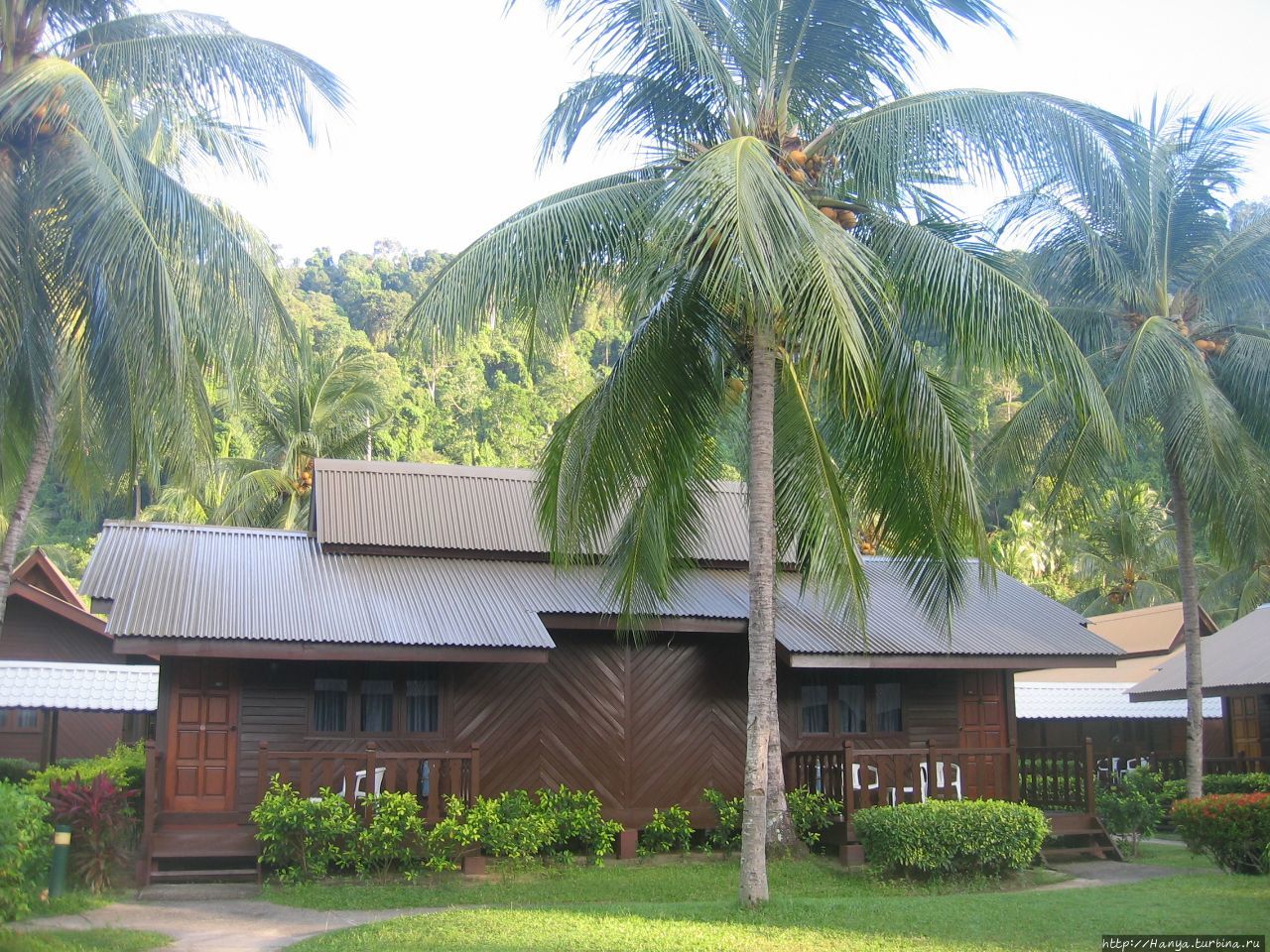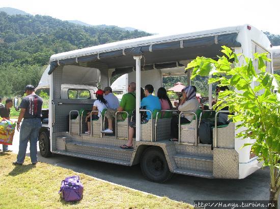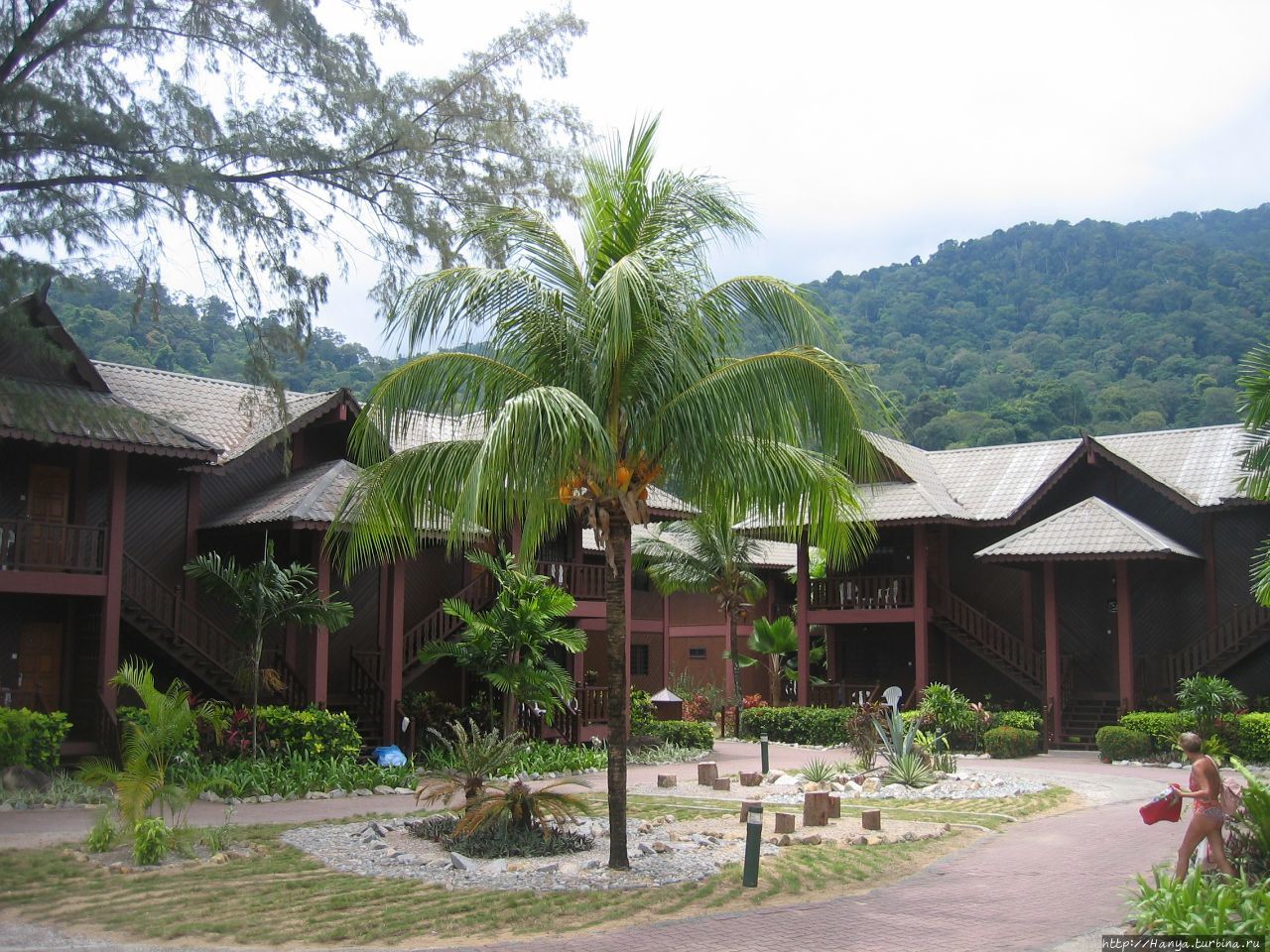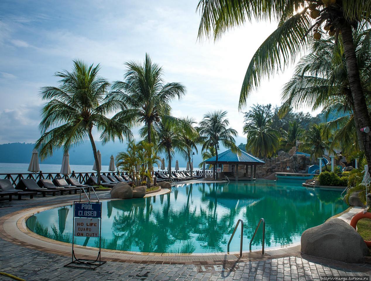 Перелет из Куала-Лумпур к месту отдыха-острову Тиоман. Ч.53), обнаруживаем, что почти все туристы направлялись в тот же отель, что и мы. Для этих целей у него имеются специальные открытые и закрытые развозки. Название выбранного нами отеля — Berjaya Tioman Beach 4*, и здесь «это единственная гостиница с международными стандартами, которая предлагает 400 домиков и элегантных номеров, расположенных на более чем 200 акров, с ее собственным международным полем для чемпионата по гольфу с 18 ямками».