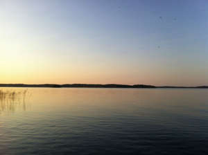 Медленно и подкрался закат. Ласковое солнце мягко касается верхушек сосен на берегу озера. На душе полное спокойствие и ощущение гармонии