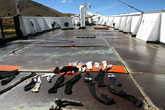 Отслужив, корабль долго стоял в сухом доке, постепенно разваливаясь, пока его не выкупил благотворительный фонд, занимающийся восстановлениям подобных реликвий. Помощник капитана Педро Зурита (сам Педро был конечно в отлучке, о чем напоминали только сохнущие на палубе обувь и носки) провел для нас индивидуальную экскурсию по судну.