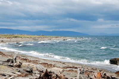 С простецкой набережной через пролив виден другой берег. Это уже остров Огненная земля. Сколько о нем мы были наслышаны в наши романтические школьные годы ...