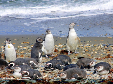 В этом ареале, как и во всей Патагонии, проживают т.н. «магелланские пингвины» (Spheniscus magellanicus). Так их назвали в честь Фернана Магеллана, первооткрывателя этих мест. А всего, как известно, пингвинов на Земле насчитывается 19 видов, из которых самый большой — т.н. «Императорский пингвин». Рост и вес этих пингвинов достигает соответственно 150 см и 40 кг — эдакие маленькие человечки. Наши магеллановы пингвины заметно уступают им по этим показателям — 80 см и 5–6 кг соответственно.