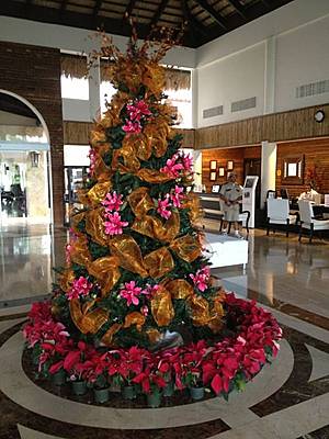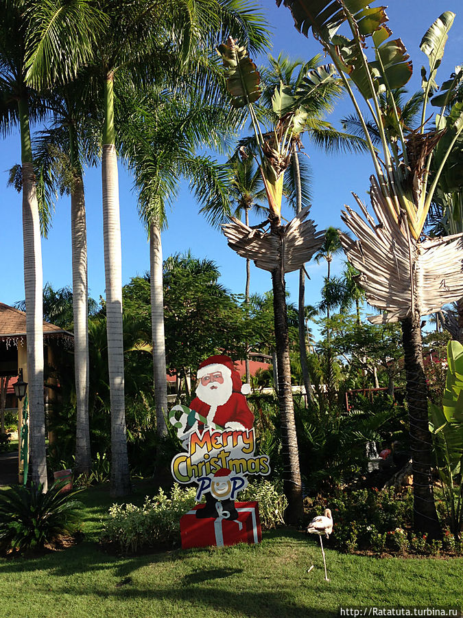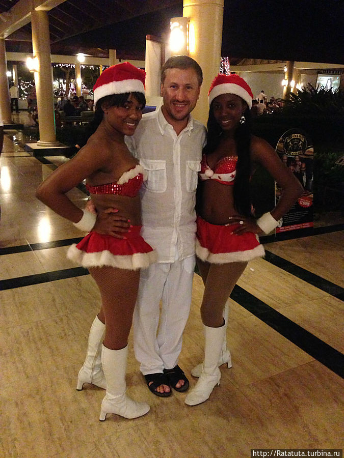 Хотя это и шутка, но русские люди, справляющие Рождество и Новый год в жаркой Доминиканской Республике, где температура зимой всего на пару градусов ниже, чем летом, действительно прибегают к разным хитростям, чтобы создать привычную им атмосферу праздника. Да, ангелы уже не снежные, а песчаные, перемигиваться гирляндами приходится пальмам, а персонал отелей наряжается в хорошо узнаваемые красные шапочки с белой опушкой, и даже встречающиеся вам мулаты, предлагающие купить сигары, ром и бог весть что еще, могут представиться "Володя" или Дмитрий Медведев (тоже, своего рода, новогоднее обращение).