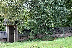Здесь у стен храма Св. Георгия, построенного в 2007 году на фундаменте старой, сгоревшей церкви, расположено родовое кладбище хозяев Тригорского.