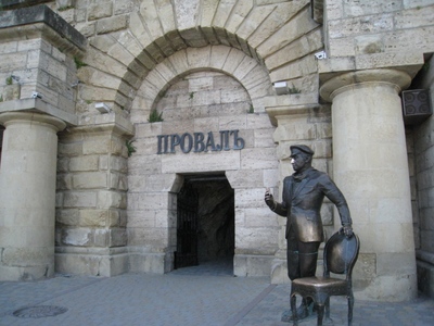• Памятник Остапу Бендеру рядом с проходом к озеру Провал
