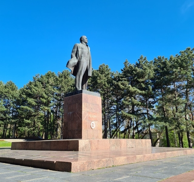 Рядом с музеем-заповедником, находится площадь Ленина, с неистребимым вождем мирового пролетариата.