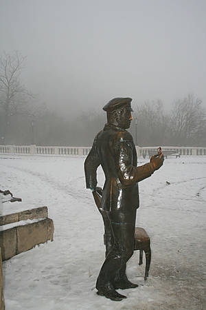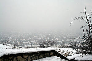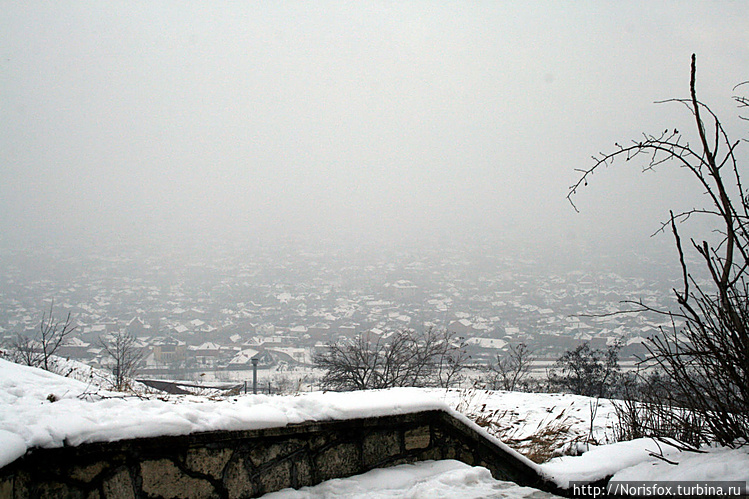 С чем сразу же возникли проблемы. Связанные, в первую очередь, с погодой. В те дни, в достаточно бесснежном регионе, будто разверзлись небесные хляби, вылив на неудачливых путешественников ведра каши, состоящей из крупного мокрого снега. Описываемая мной каша, была повсюду: сыпалась с неба, хлюпала под ногами и даже витала в воздухе в виде густого тумана. А если еще учесть, что форма одежды у нас была совсем не путешественническая, а совсем наоборот, то можно с далеко идущими планами по осмотру города просто распрощаться.