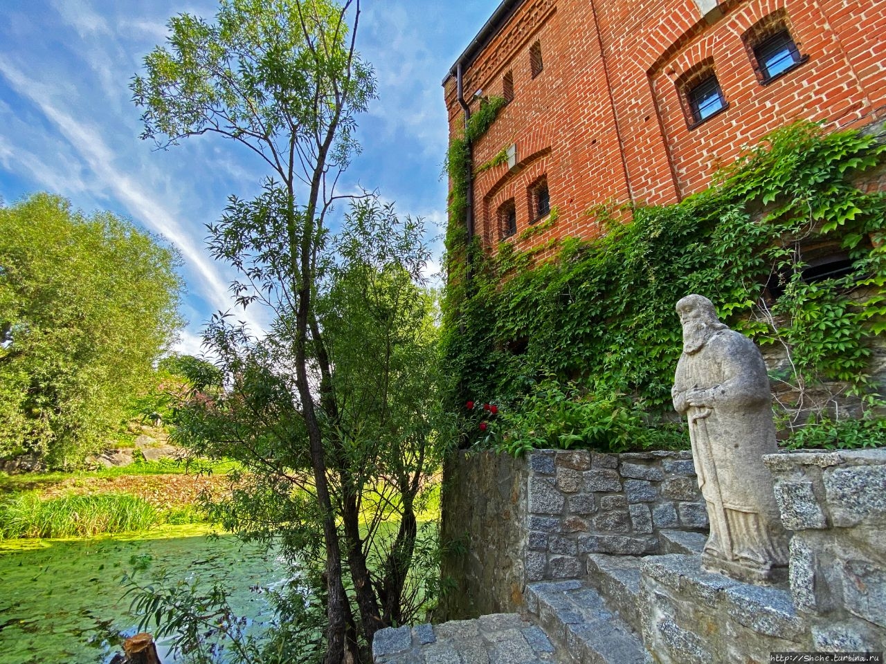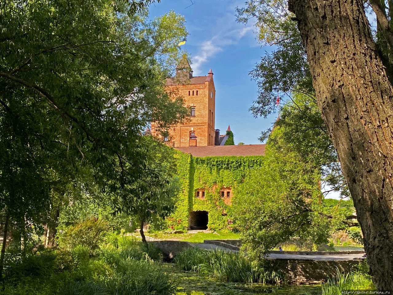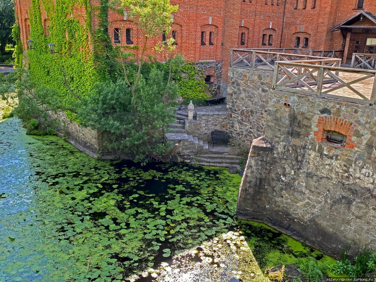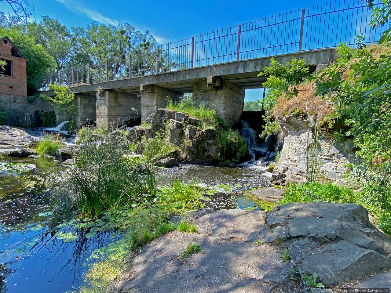 Здесь оказалась дамба, которая выше по течению образовала небольшое водохранилище. Когда мы определились, что красивое кирпичное строение не замок на берегу озера, а водяная мельница, становится понятно, что именно вода этого водохранилища еще недавно крутила жернова...