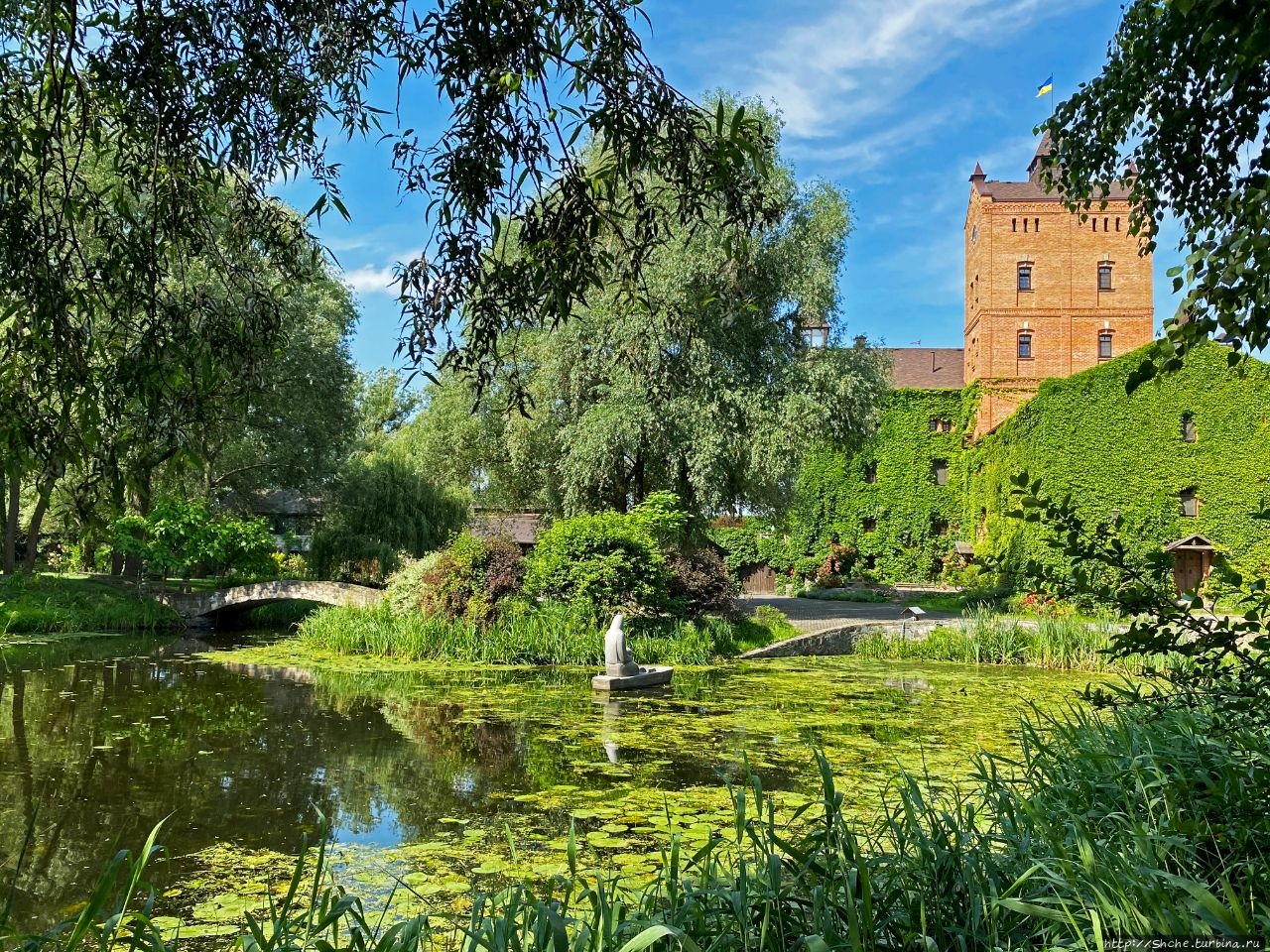 Признаюсь, я заранее не ознакомился с тем, что я смогу увидеть в Радомысле, решив, что надо оставлять место для сюрпризов. Потому, увидев высокую кирпичную башню, выглядывающую из-за ухоженного парка, подумал что-то типа: "Ну наконец я увижу не руины..." (Хотя живописные руины я очень даже уважаю).
