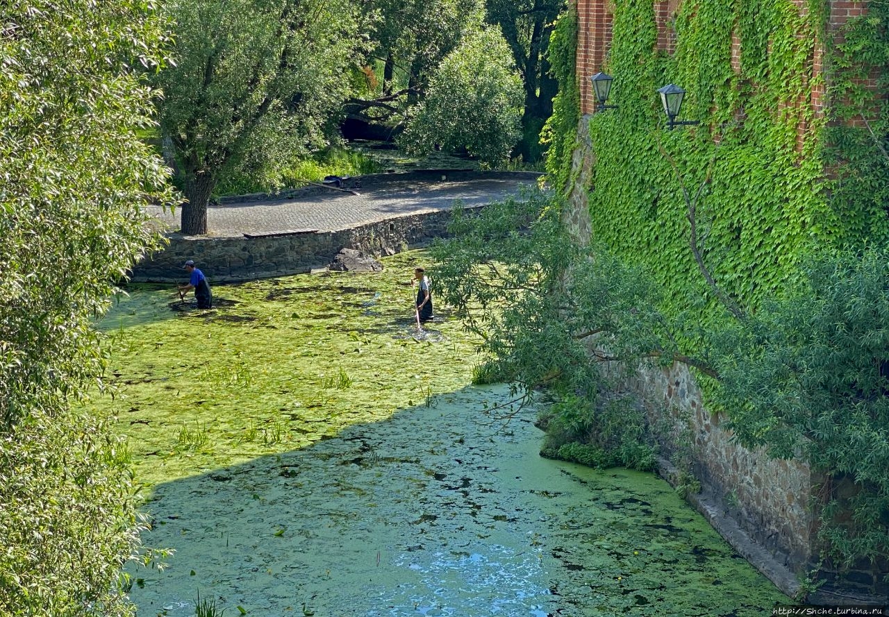 Когда я уже шел на выход, стал свидетелем очень любопытного на мой взгляд действа. В озере перед замком я увидел двух мужиков с косами.