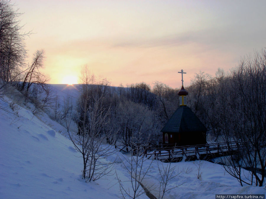 Спуск по лестнице к святому источнику Сергию Радонежскому
