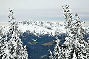Чем выше — тем больше зимы, заснеженный лес, замерзающие елки, снежная сказка. Отсюда, очень красиво смотрятся долины, словно открываются окна в другой мир.