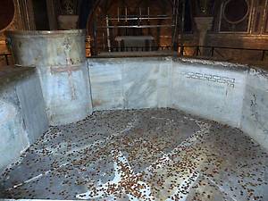 Бросая монетку в купель, люди, как бы, приносят "жертву" Спасителю, а, может быть, просто "загадывают" желание вернуться в Равенну вновь.