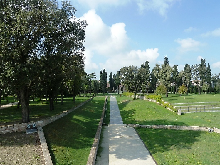 Место для своего Мавзолея Теодорих выбрал "по традиции": здесь уже существовало кладбище готов. Выйдя из здания, я увидел длинное зеленое поле и красивую широкую аллею.