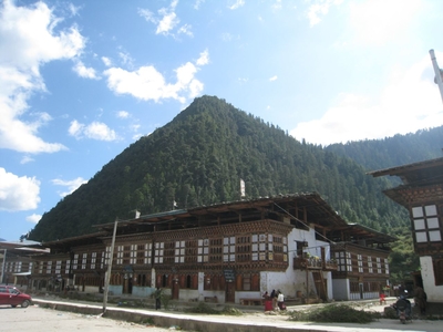 Ознакомившись с двумя храмами («Белый (Karpo) и Черный (Lhakhang Nagpo) храмы Хаа. Ч.85»), далее нас завозят в сам городок Хаа, который (по словам Тандина) является самым urgly (ужасным) в стране. Не могу полностью согласиться с ним, хотя трудно сказать, потому что мы прогулялись только по центральной улочке с традиционными домами в три этажа. Первые этажи отданы магазинам, всевозможным салонам, а среди ярких домиков спокойно бродят коровы.