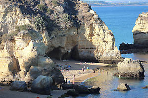 Побережье Алгарве весьма разношерстно: каждые 15-20 километров меняется рисунок береговой линии, температура воды и контингент отдыхающих. Всего теплее, комфортнее и дороже в Альбуфейре. Портимао, застроенный многоквартирными комплексами и барными улицами, популярнее всего среди самих португальцев. Ну а Лагуш (в котором остановилась и я) предпочтительнее среди молодежи – в основном, британского происхождения. Его уютные бухточки прекрасно располагают ко многочасовому валянию (благо что можно укрыться от жесткого солнца в тени от скал), а с наступлением темноты присутствует относительно приемлемая для европейской молодежи ночная жизнь. Хотя тусовочным местом Лагош можно назвать лишь относительно: в два часа ночи музыка повсеместно выключается, и бары закрывают свои двери. Но на улицах в любом случае царит счастливая атмосфера лета. Хотя отдыхающие и забивают под завязку отели и апартаменты, на пляжах все еще остается достаточно места для каждого.