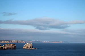 Зато за чистоту песка почти все здешние пляжи награждены голубым флагом. Из открытых кафе вкусно тянет жареными сардинами. По холмам и кривым улочкам карабкаются вверх белоснежные домики с черепичными крышами. В лазурную синеву моря глубоко врезаются золотистые скалы…