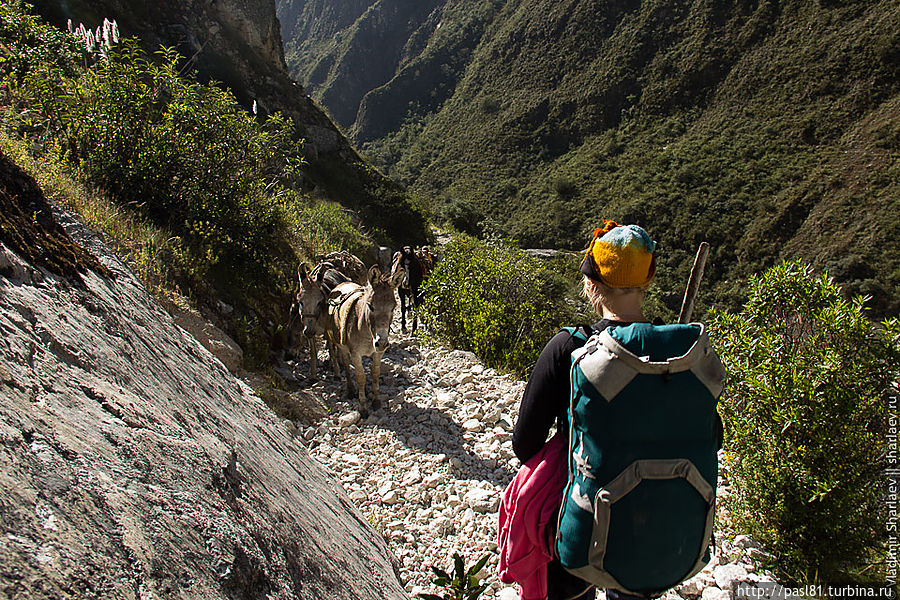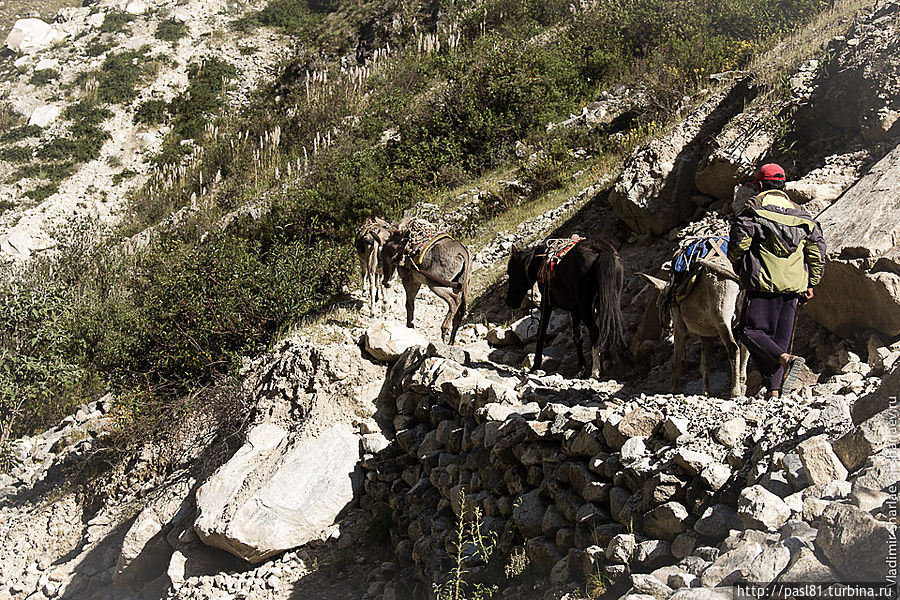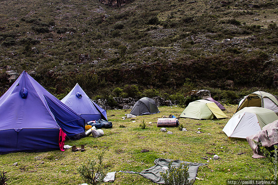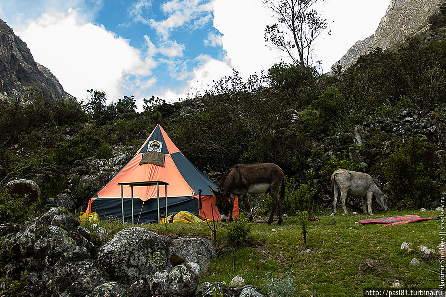 В середине дня доходим до последнего, отмеченного на карте лагеря. На ночлег становиться явно рано, так что проходим не задерживаясь. Чуть дальше разбит бивуак организованной группы. Туристов не видно, но для каждого уже стоит палатка, в стороне высокая палатка-сортир. Погонщики ослов отдыхают в шатре-столовой. Вот такой пеший туризм для ленивых. Идешь на легке, а к концу дня приходишь к готовому лагерю и вкусному ужину.