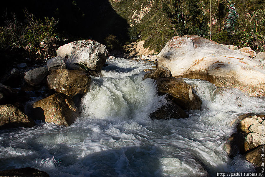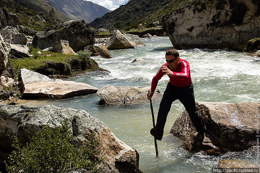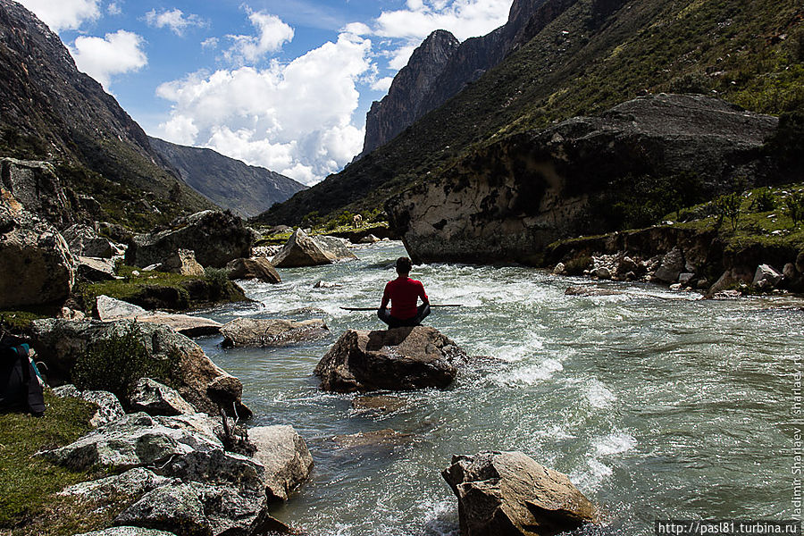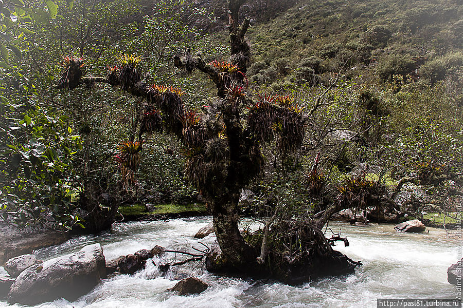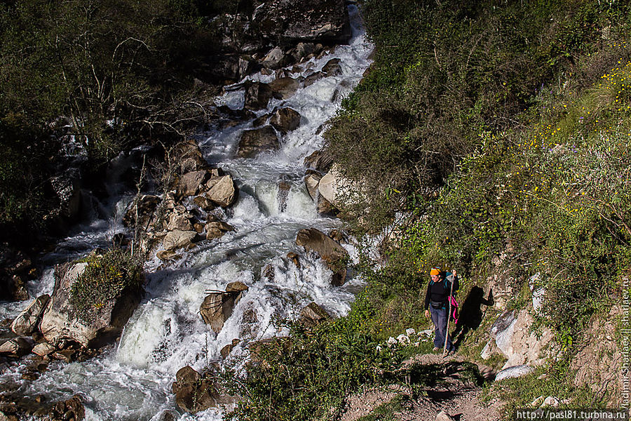 Километров через пять становится понятно, что такая идея может прийти в голову только потенциальному самоубийце. Река, относительно "спокойная" выше по течению, устремляется в каньон. До поселка Кашапампа в конце маршрута мы идем вдоль бесконечного водопада! Потрясающие зрелище!