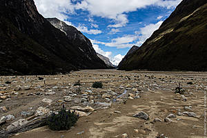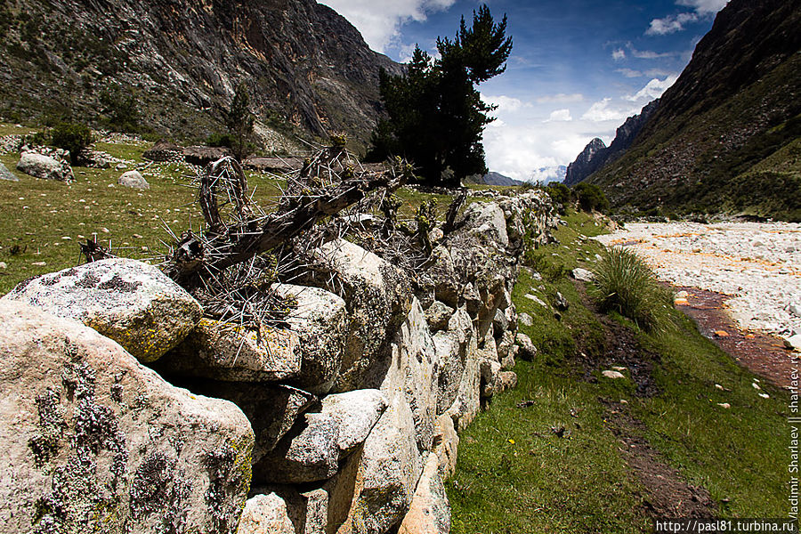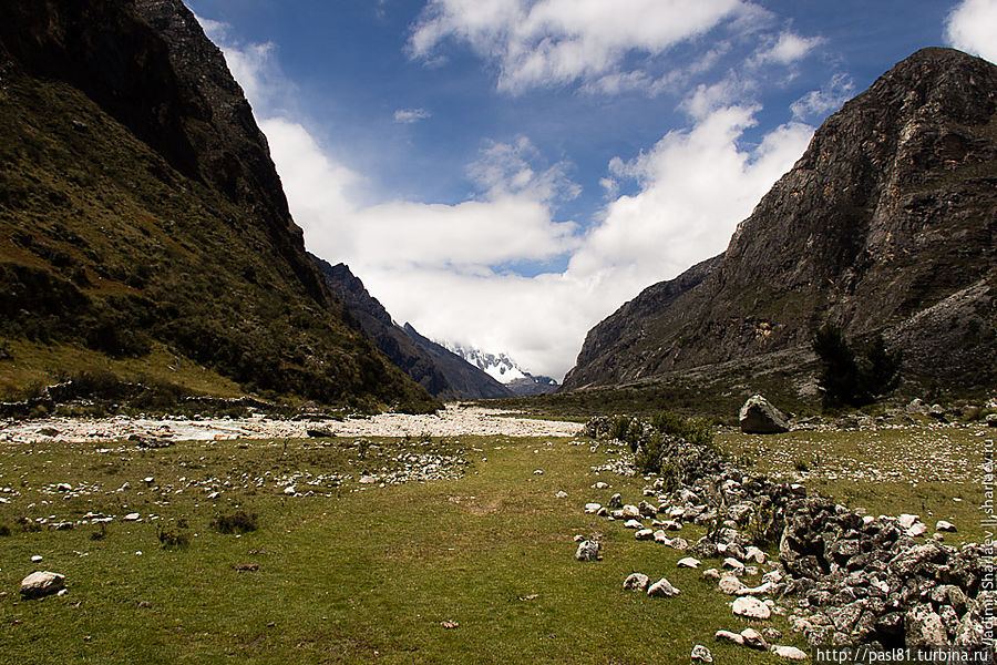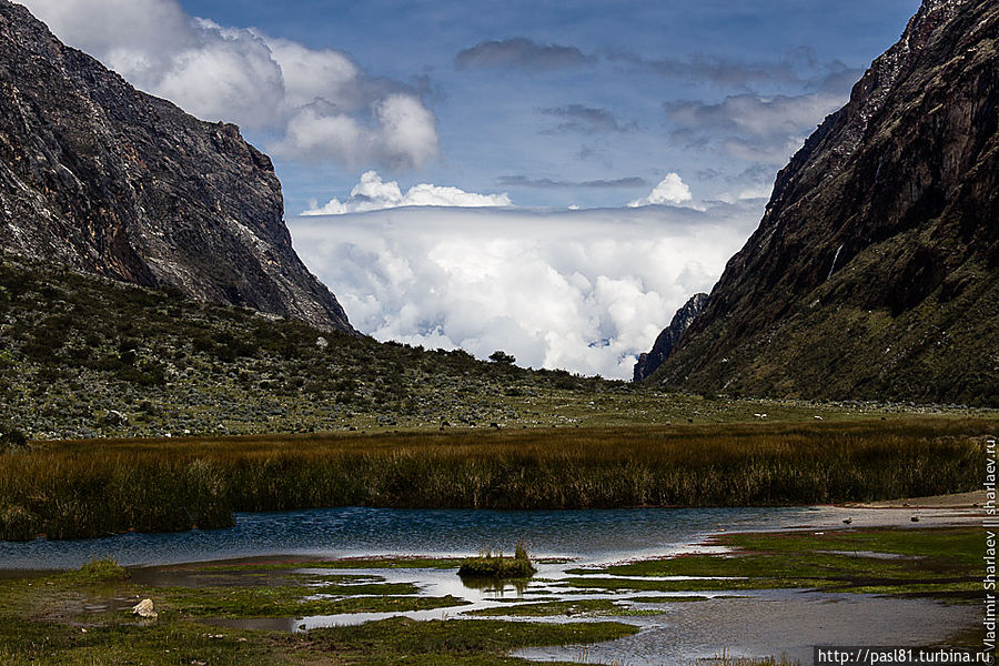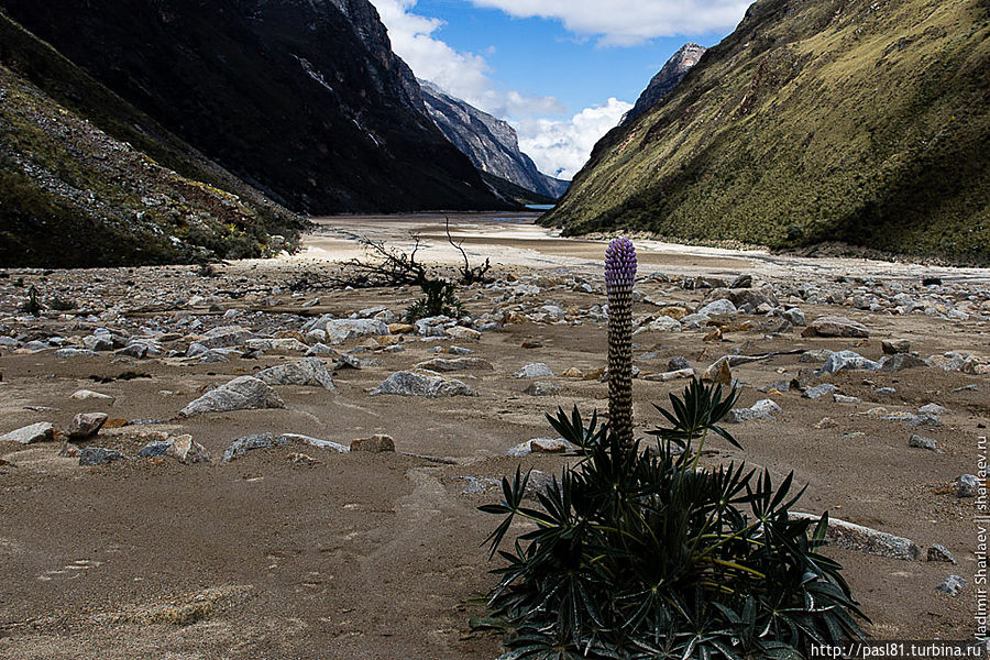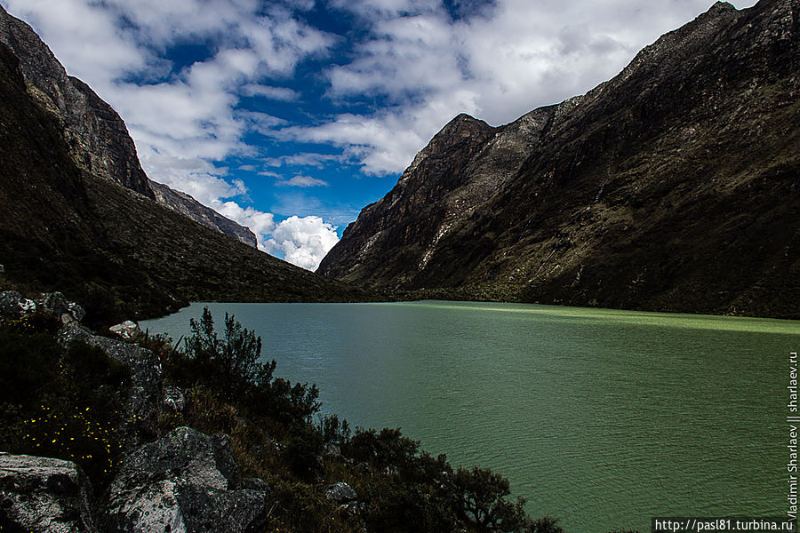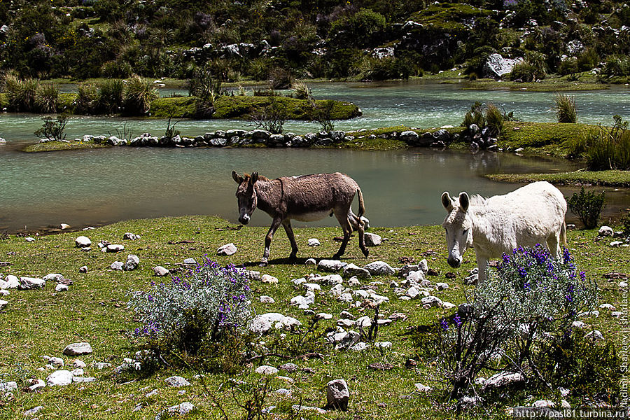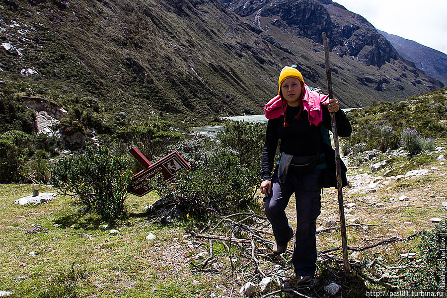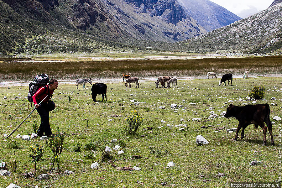 Наконец, подходим к лагуне. Большое озеро, тропа идет чуть выше по склону, но потом подходит к берегу. Значит, будем купаться! Вода прохладная, но явно теплее, чем во вчерашнем озерце. Мимо проходят две молодые немки и делают удивленные лица — как можно купаться в такой ледяной воде? Догоняют нас и чешские друзья. В воду лезть не хотят, уходят вперед, но вскоре мы их обгоняем… В следующий раз мы с ними встретимся уже в Хуаразе, в уютном и дешевом хостеле, рекомендованным ими.
