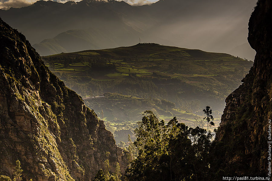 Тропа петляет по склону горы, высота все меньше. Видим водоотвод, перекинутый через широкое ущелье. Где-то на огромной высоте подвешена труба, доставляющая воду на верхние поля.