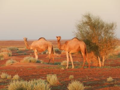 Замёрзший ночью Абакар совершал утреннюю пробежку. Увидев дромедаров, он сразу определил, где-то рядом должно располагаться семейство кочевников. Верблюдов отпускают погулять, и те, в последующем, когда захотят пить, через пару-тройку дней возвращаются к хозяевам.