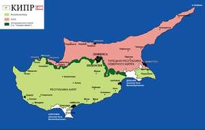 На российских картах Кипр изображен одним цветом и на нём не выделены никакие другие страны, хотя на севере острова находится непризнанная Турецкая Республика Северного Кипра , а рядом с Ларнакой и Лимассолом британская заморская территория Декелия и Акротири.
