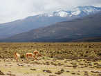 • Викуньи на фоне вулкана