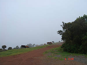 Паул де Серра — высокогорное плато. Коровки пасутся в тумане.