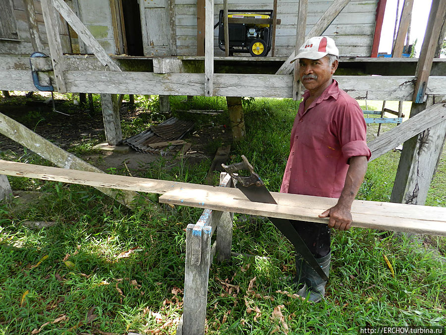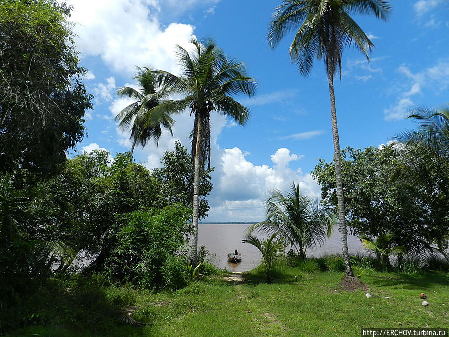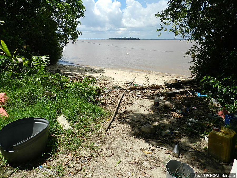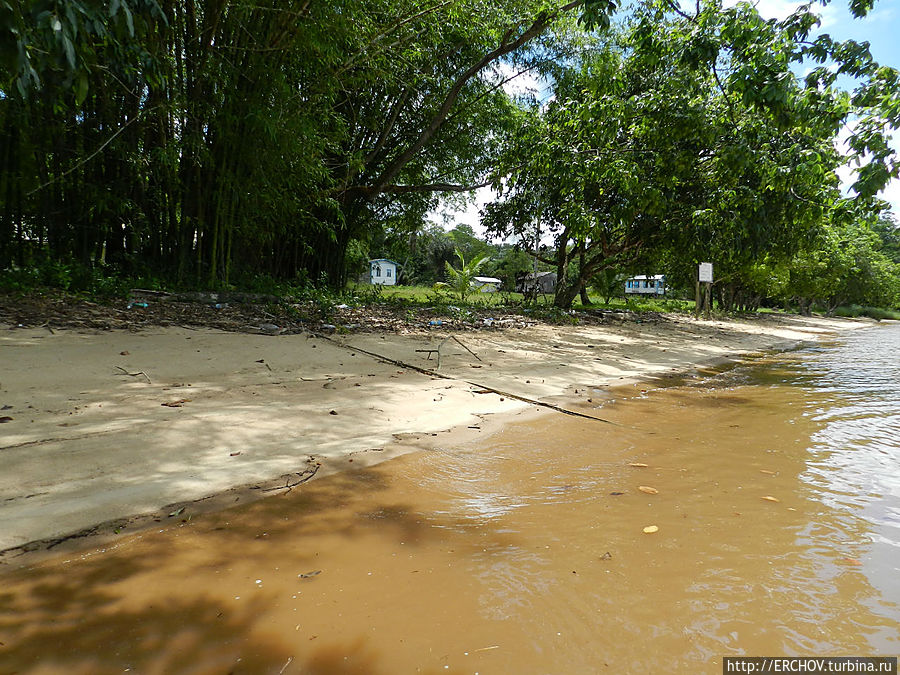 На реке много зелёных островов, и чем дальше от порта, тем более безлюден берег. Примерно через час выпрыгиваем из надоевшей лодки на песчаный пляж. Лодочник привёз нас в индейскую деревушку. Народ отсюда давно сбежал в город, как следствие много пустых брошенных домов.