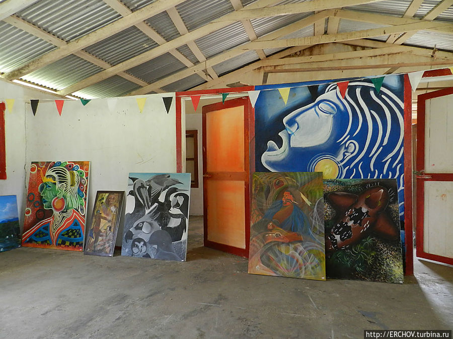 Здесь у нас новые рейнджеры. Все они индейцы, живущие рядом в деревне Сурама. Один из ребят позже повёл нас на экскурсию в эту деревню. Чего-то особенного там тоже нет. Взлётная полоса огорожена от коров колючей проволокой, рядом футбольное поле. Местная школа в отсутствии доски, стульев и парт, заставлена картинами, и скорее напоминает небольшой музей живописи.